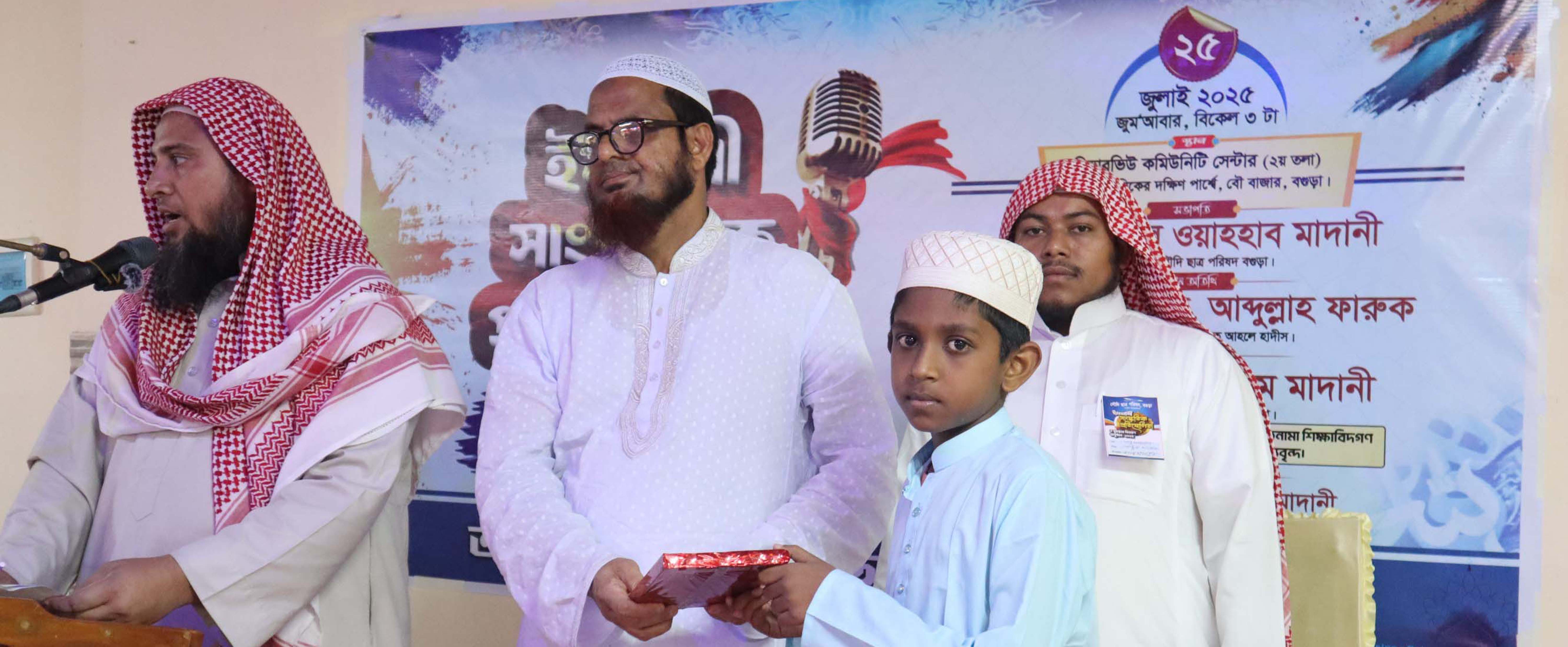 ৩. কো-কারিকুলাম কার্যক্রমঃ লেখা-পড়ার পাশাপাশি শিক্ষার্থীদের সুপ্ত মেধা বিকাশের জন্য বিভিন্ন কো-কারিকুলাম কার্যক্রম গ্রহণ করা হয়। শিক্ষার্থীদের ইসলামী চেতনাবোধকে সদা জাগ্রত ও শানিত করার জন্য শিরক, বিদ‘আত মুক্ত ইসলামী সংগীত, বক্তৃতা ও বিতর্ক প্রতিযোগীতার ব্যবস্থা করা হয়। আর সেই লক্ষ্যে মেধাবী, পরিশ্রমী ও আগ্রহী ছাত্রদেরকে নিয়ে গঠিত হয়েছে ‘ইসলামীক কালচারাল গ্রুপ’।"